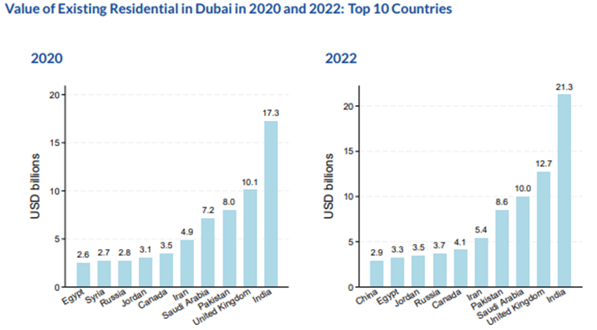 This influx contributed to Dubai's exceptional 2022 market performance, with total property transactions reaching $144 billion, registering a 76.5% annual increase. While Russian capital contributed to the overall foreign investments, their investment volume was outstripped by Indian and British investors. Nonetheless, capital flows from Russia retained substantial influence in premium segments, especially in off-plan developments and luxury areas like Palm Jumeirah.